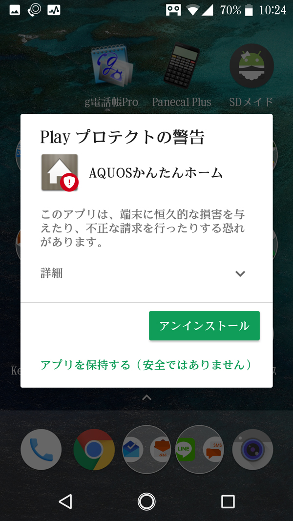 有害なアプリの無効化 「AQUOSかんたんホーム」はお使いの端末に有害である可能性があります。